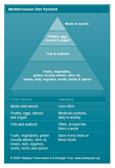 Take a look at this helpful Mediterranean Food Pyramid illustration © Oldways