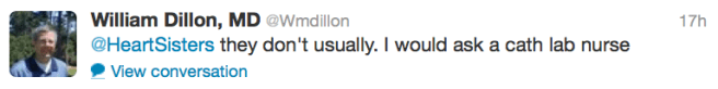I can’t say I’m surprised. It’s very challenging in Twitter’s 140-character limitations to fully explain that original bombshell tweet of his. And perhaps he may feel reluctant to continue down what looks like an increasingly loaded road. Perhaps he assumed that this pesky patient at Heart Sisters would just accept his Twitter explanations and go away. Perhaps he felt surprised that I haven’t yet.