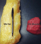 Kam is a kinesiologist who spoke to our group about the importance of regular physical activity for heart patients. He handed around two pieces of rubber that had our group as transfixed as a bunch of grade school kids, complete with screwed up faces and tongues sticking out. One was a red five-pound replica of a piece of muscle and the other was a yellow five-pound replica of a piece of human fat. The point: the fat was about three times the size of the same weight of muscle! He mentioned the fat was typical of what you might find on the thigh or backside of an overweight person. And just to pound the message home: he explained that you need to burn 3,500 calories to lose one pound of fat. Burning just 215 calories after eating 40 grams of a chocolate bar takes 54 solid minutes of brisk walking. Burning 3,500 calories takes a lot more walking!