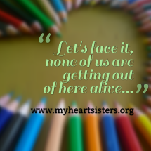 Sometimes, it seems that we consider death to be a terrible mistake that should never ever happen to anybody, instead of the inevitable end result of being born. But let’s face it, my heart sisters:   none of us is getting out of here alive. . .