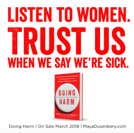 Dusenbery is the author of the highly recommended book called “Doing Harm: The Truth About How Bad Medicine and Lazy Science Leave Women Dismissed, Misdiagnosed, and Sick“. She suggests that we are starting to see younger female patients speaking up about these kinds of dismissive experiences, adding: