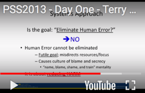 “Human error cannot be eliminated. Trying to do this causes a culture of blame and secrecy (or, the ‘name, blame, shame and train’ mentality).”