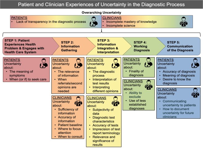 Communicating diagnoses does not guarantee that patients understand the diagnoses, hence, the importance of clinicians providing support and information to help patients understand and cope with uncertainty. Trust and confidence in healthcare professionals’ ability to make diagnoses can decrease uncertainty, while a lack of confidence or a lack of information may increase uncertainty.