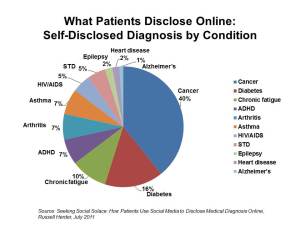 See that microscopically tiny little purple sliver near the top of the pie chart? That’s heart disease – and the sliver represents how many heart patients are going online to engage with others about our shared diagnosis. As you can see, we make up barely 2% of all diagnoses discussed by patients on social media, the second smallest slice of this very big tasty pie.  You might wonder why that is given that, compared to every other disease included in this study’s findings, heart disease is our biggest killer. Continue reading ““Seeking Social Solace”: why aren’t heart patients online?”