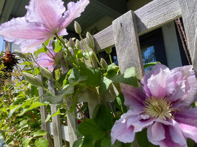 So while I try to limit the time I spend fretting over each poor rose leaf, I’ll also remind myself to just s-l-o-w down – and smell the clematis. . .